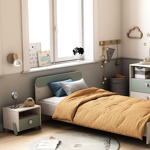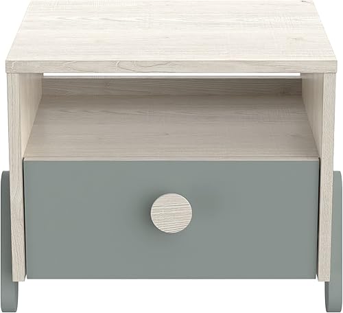 Demeyere Table de Chevet Enfant Ilian - 1 TIROIR - Chêne Topanga/Vert, 393x327x341MM