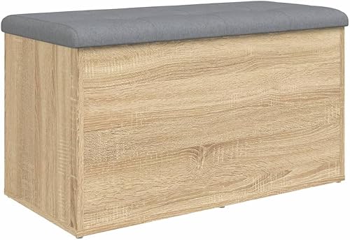 vidaXL Banc de Rangement, Coffre de Rangement avec Coussin, Organisateur de Vêtements Jouets Couloir Salon, Moderne, Chêne Sonoma Bois d'Ingénierie