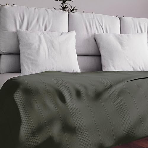 Soleil d'ocre, Adele, Couvre lit, jeté de canapé, Coton, Kaki, 180x220 cm