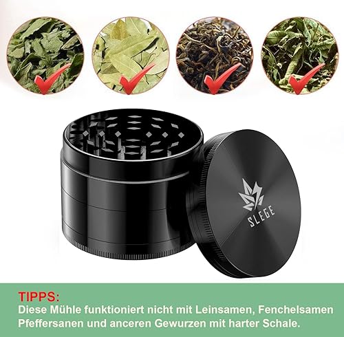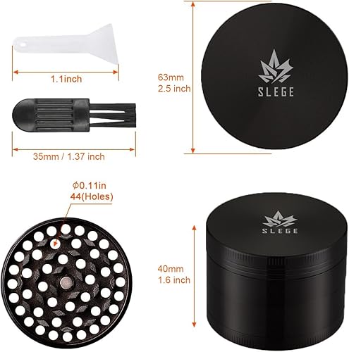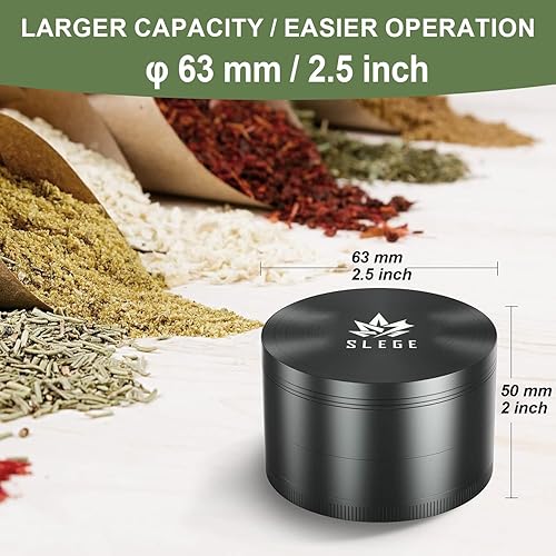 Moulin à epices manuel, Grinder 2,5' (63 mm), Grinder Métal [GARANTIE À VIE] - Grinder à épices, Grattoir, Brosse (Noir)