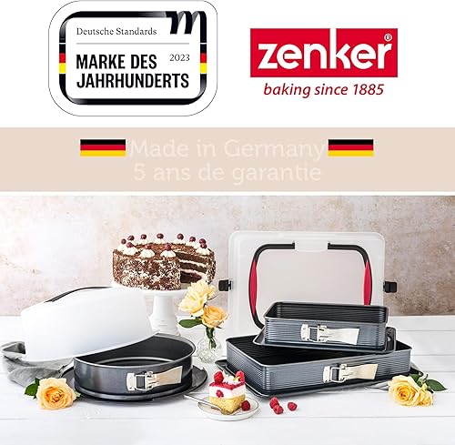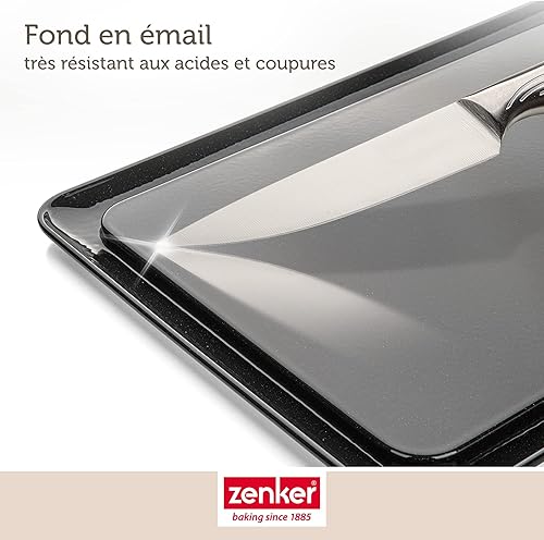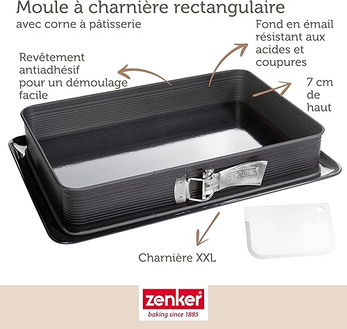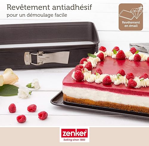 Zenker 7022 Moule à gâteaux rectangulaire à charnière, Moule Rectangle, Plat à Four, Plat à gratin, Moule à gâteaux avec Plateau, Acier émaillé, 42 x 29 cm, Noir