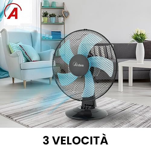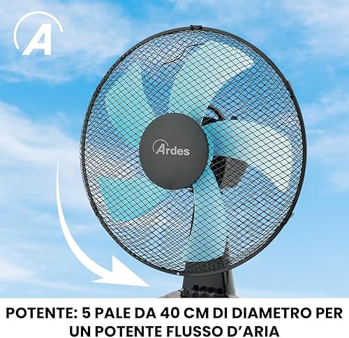 Ardes - AR5ST40N Ventilateur de table STEELO 40N 5 pales - Ventilateur de table 40 cm oscillant avec inclinaison réglable - Ventilateur 3 vitesses silencieux, Noir