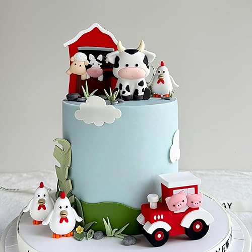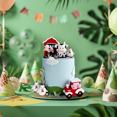 6 pièces décoration gateau anniversaire de la ferme,décoration gateau anniversaire animaux,décoration de gâteau de ferme,pour une fête ou une baby shower sur le thème de la ferme garçon et fille,rouge