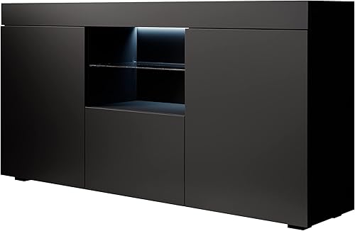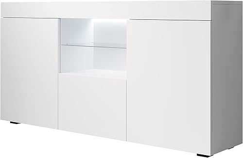 MB Muebles Bonitos, Buffet Sefora pour Salon et Salle à Manger avec Lumière LED, Meuble en Mélamine Mate, Couleur Blanc et Sonoma, 135x73x34 cm
