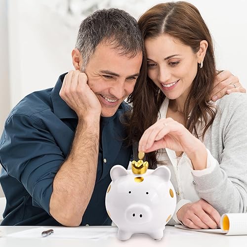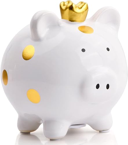 Dokeno Tirelire en Forme de Cochon, Tirelire Enfant Cochon Blanc, Tirelire en Céramique de Mignonne, Tirelire Cochon à Casser, Tirelire Cochon Originale Cadeau D'anniversaire pour Fille, Garçon Adulte
