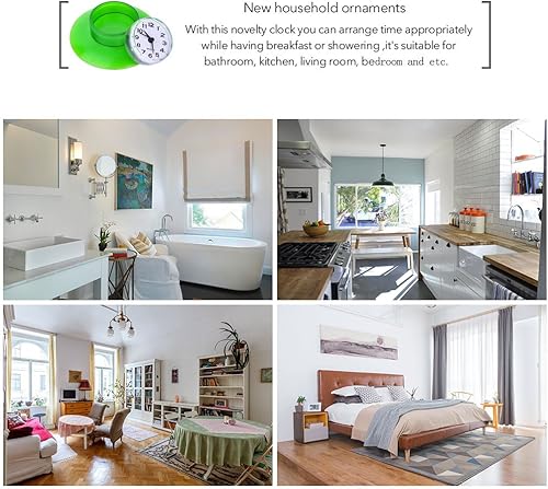 Mini Horloge Murale Ronde Étanche À Ventouse, Décoration À Quartz Pour Salle De Bain, Cuisine, Salon, Chambre À Coucher (Vert)