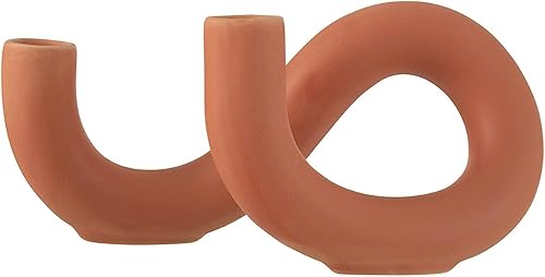 J-Line Bougeoir Torsion 2 Bougies Ceramique Orange