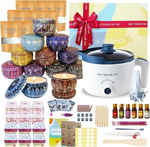 LINGQIAN Kit de Fabrication de Bougies DIY avec Fondoir à Cire, Décoration Pour Fabriquer vos Propres Bougies avec 12 Verres à Bougies Constellation