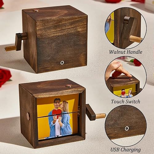 Cadeaux d’Anniversaire Personnalisés pour Hommes, Femmes & Couples - Cadre Flip Book Photo Personnalisé, Boîte Flipbook à Manivelle, Album Photo Mécanique pour Maman, Famille & Saint-Valentin
