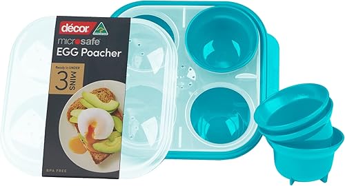 Décor Microsafe Pocheuse à œufs | sans BPA | Batterie de Cuisine pour Micro-Ondes | Passe au Lave-Vaisselle | Bleu Sarcelle | Taille Unique