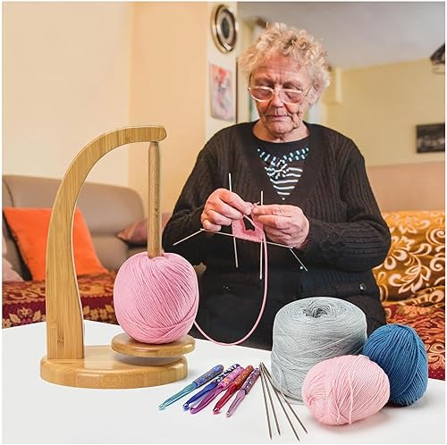 KARPIX Dérouleur de laine, support magnétique pour pelotes de laine, support rotatif, porte-fil, enrouleur de fil en bois, cadeau au crochet pour les amateurs de tricot (A)