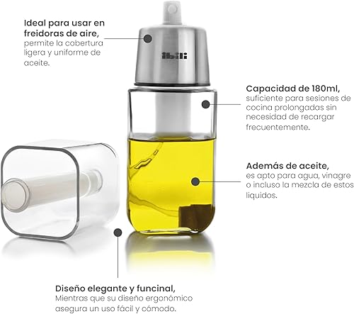 IBILI Pulvérisateur - Huilier spray par pompage, 180 ml, récipient en verre, idéal pour friteuses à air et cuisine saine