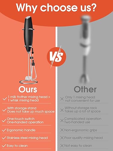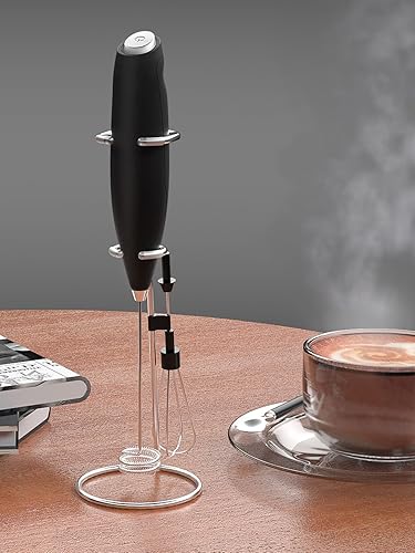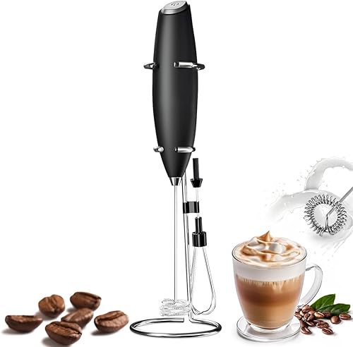 Mousseur à Lait Avec Support et 2 Têtes LULUWA, Mélangeur à œufs pour Boissons Portable Machine à Mousse à Café électrique pour Macchiato Cappuccino Matcha, Sans batterie (Noir)