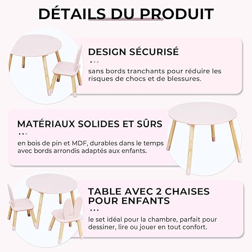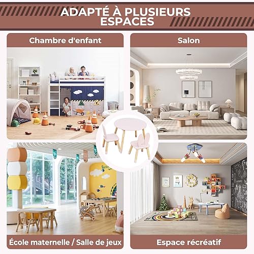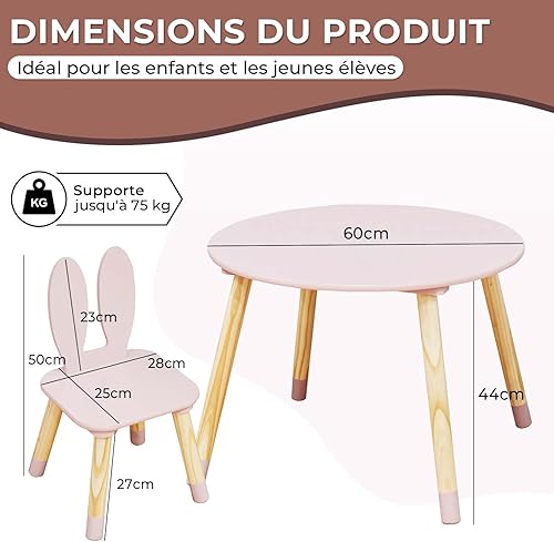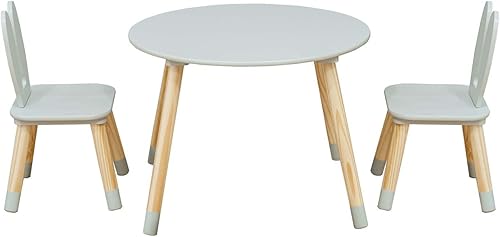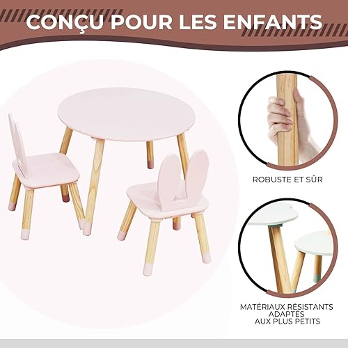 Rebecca Mobili Ensemble table et 2 chaises pour enfants, table enfant avec chaises, vert eau marron, MDF pin, pour chambre Montessori - Dimensions : 44 x 60 x 60 cm / 50 x 28 x 25 cm - Art. RE7018