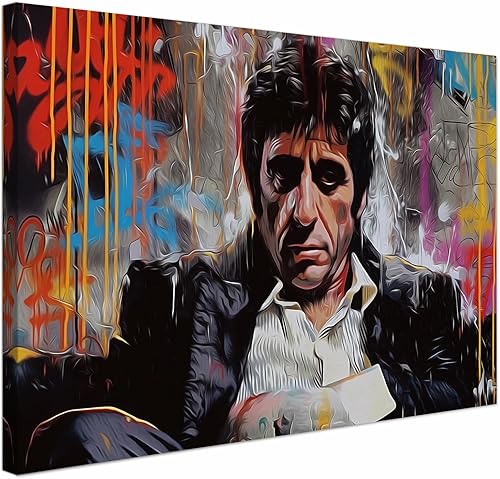 AREDE Tableau Décoration Murale sur Toile | Cicatrices d'Al Pacino | Art Déco Salon Chambre | Tableau Moderne 60 x 40 cm | Prêt à être accroché