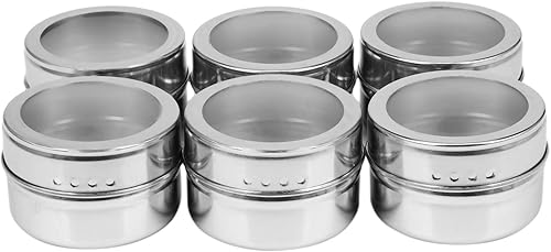 Qerwsdty R Lot de 6 boîtes à épices avec couvercle transparent aimanté en acier inoxydable