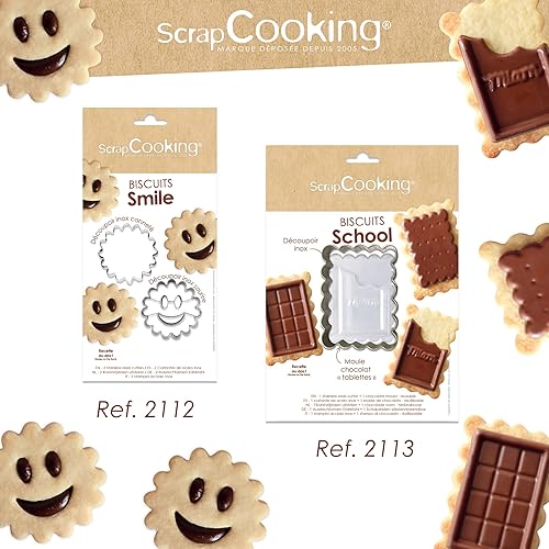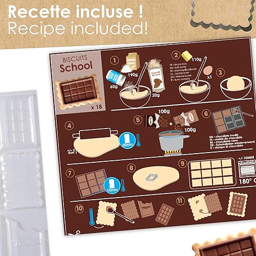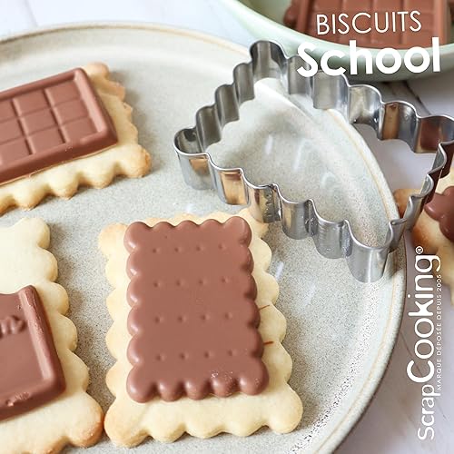 ScrapCooking - Kit Biscuits « School » - Découpoir en Inox & Moule Tablettes Chocolat - Kit Emporte-Pièce Petits Gâteaux Petit Beurre - Accessoires Pâtisserie Enfants Goûter - 2113