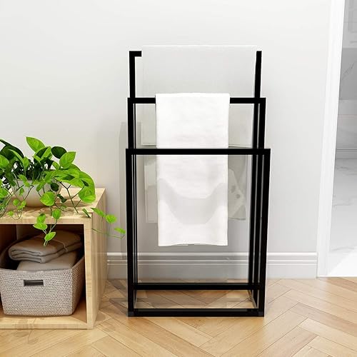 storagehook Porte-serviettes sur pied, en métal, 3 barres, autoportant, à 3 étages, de rangement, porte-serviettes autonome, bronze