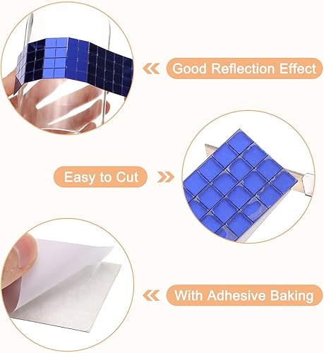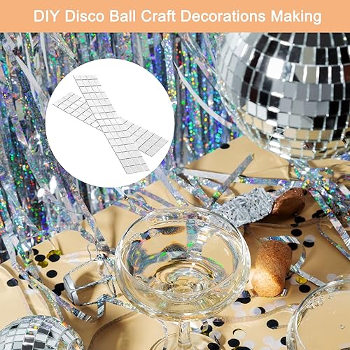 QUARKZMAN 1320 Pièces Autocollants de Carreaux de Mosaïque Miroir Auto-Adhésifs, 10 x 10 mm Mini Carreaux de Mosaïque en Acrylique Carrés pour Boule Disco Décorations Artisanales, Argent