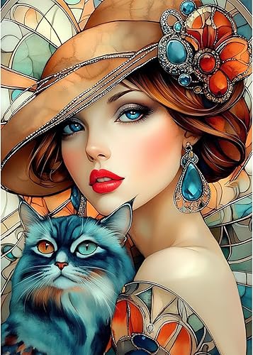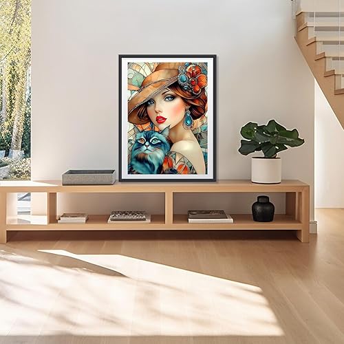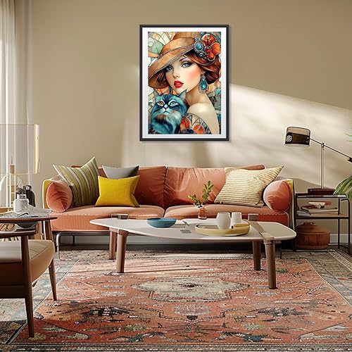 MEIYUDA Diamond Painting Art Retro Lady, 5D Diamond Painting Adulte Enfant Diamond Painting, Decoration Chambre DIY Des Pierres Précieuses Pour La, Maison Décoration Murale Cadeaux 30x40cm