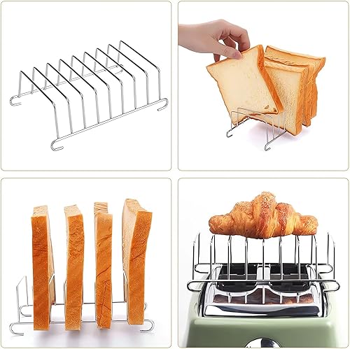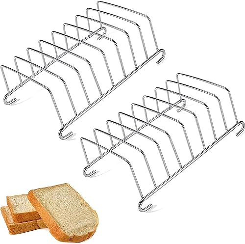 GRGO 2 Pièces Porte Toast, Porte Toast Tranches, Supports À Toast en Acier, Porte Toast À 8 Fentes, Porte Pain Argenté Accessoires, pour Friteuse À Air Cuisine Support De Refroidissement