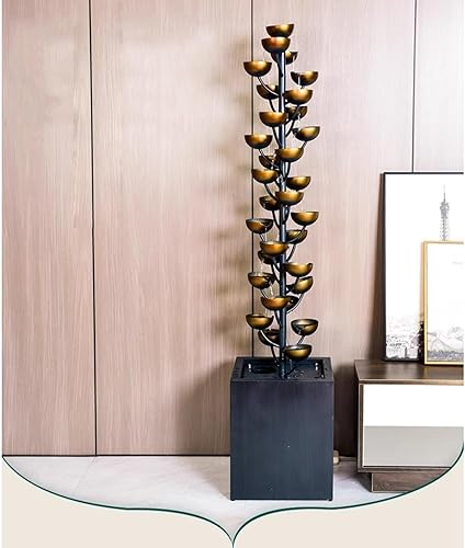 Fontaine Cascade Fontaine d'intérieur rétro en Fer forgé, décoration créative for Salon, entrée, Bureau, Fontaine en Cascade, Bol en métal, Cascade Fontaines de Table (Size : 35x35x188cm)