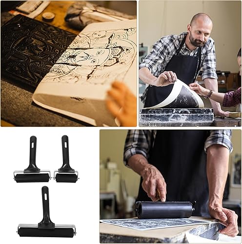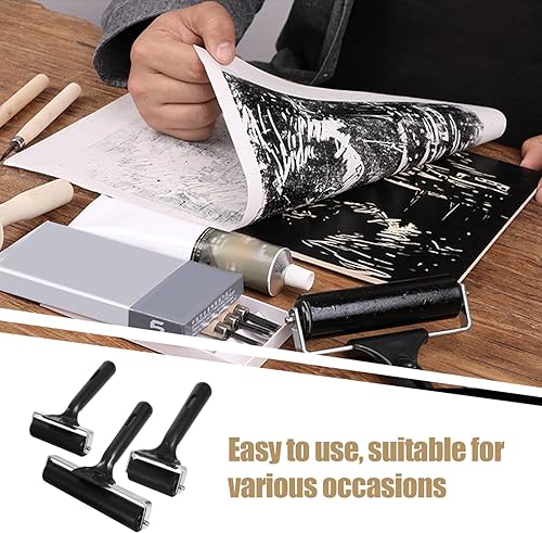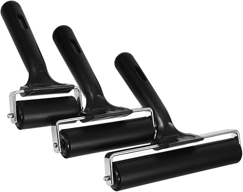 SOPOTUTU 3 Pièces Rouleau De Gravure Outils De Papier Peint Fournitures De Gravure Rouleau De Peinture D'angle Rouleau à Main Outils D'artisanat Rouleau De Métier Caoutchouc Black