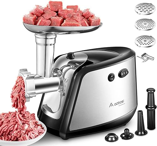 【Upgraded】Aobosi Hachoir Viandes Électrique, 3 en 1 Hachoir à Viande avec 3 plaques de broyage en acier inoxydable, Accessoire de Kubbe et de Saucisse,1200W MAX Moteur en cuivre pour un broyage rapide
