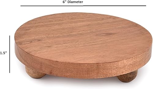 Indus Lifespace Lot de 2 présentoirs ronds en bois d'acacia pour comptoir de cuisine/salle de bain/support de plantes (15,24 cm x 15,24 cm x 3,81 cm)
