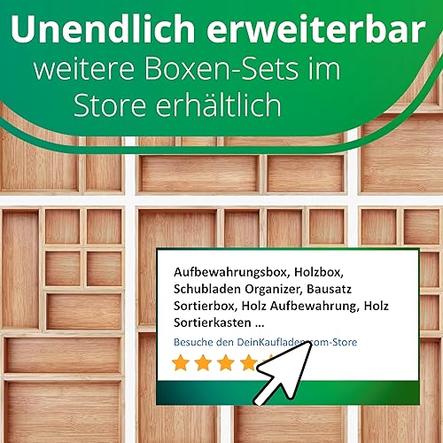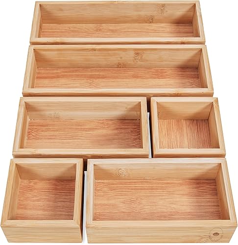 DeinKaufladen.com Lot de 6 boîtes de rangement en bois - Boîte en bambou pratique et flexible - Boîte de rangement - Boîte de rangement pour cosmétiques