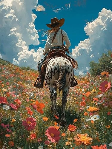 Diamond Painting Cowboy, Diamond Painting Enfant Fleur, Peinture Diamant Enfant, 5D Bricolage Kit Broderie Loisirs Créatifs Adultes, Point de Croix Pour Adultes Débutants Maison Décor 40x50cm C-316