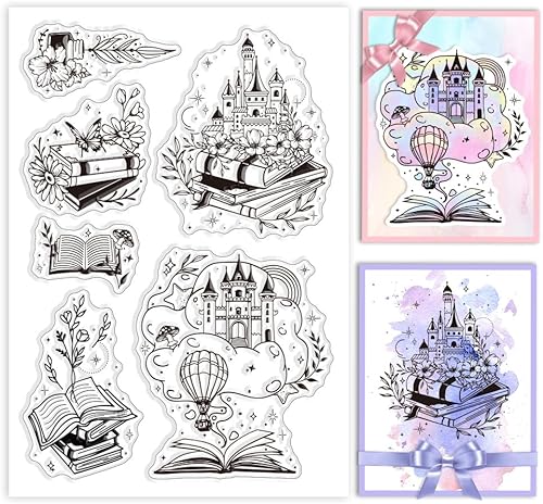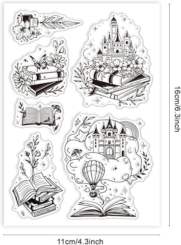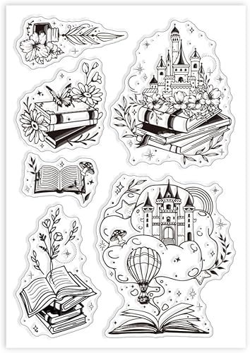GLOBLELAND Contes de Fées Tampons Transparents Fleurs Livres Magiques Tampons Transparents Décoratifs Tampons en Silicone pour la Fabrication de Cartes et le Scrapbooking DIY