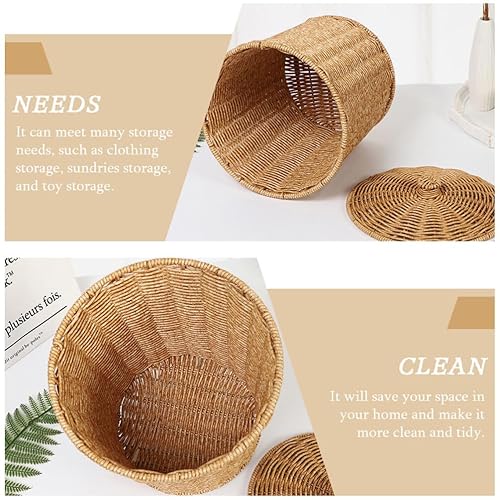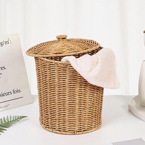 ABOOFAN Poubelle En Osier Poubelle Tissée Corbeille En Rotin Avec Couvercle Panier En Osier Panier De Rangement Tissé Poubelle Ronde Panier Poubelle Poubelle Conteneur De Vêtements