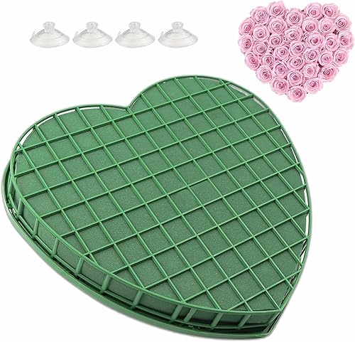 Coeur en Mousse à Fleurs, 31 cm Mousse pour Compositions Florales DIY, Coeur en Mousse Florale avec Treillis, avec Ventouse, Peut Etre Utilisé pour Les Fêtes