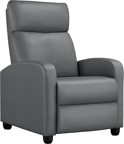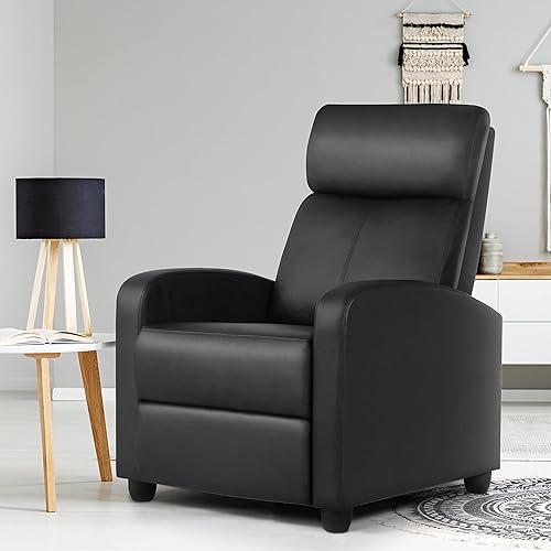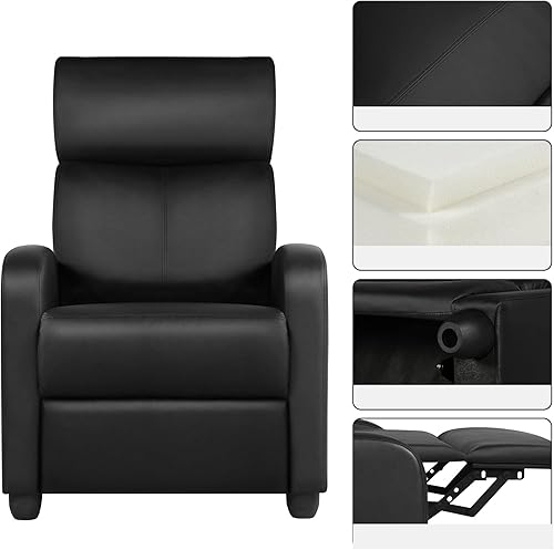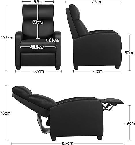 Abician Fauteuil de Relaxation Canapé 1 Place Confortable Inclinable en 3 Positions avec Repose-Pied, Patins Antidérapants, pour Salon Chambre Bureau Noir/Similicuir