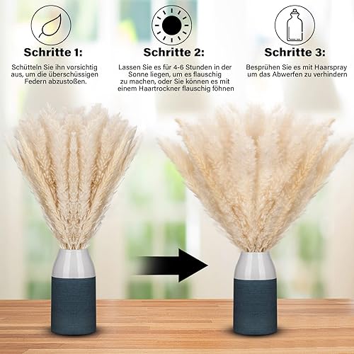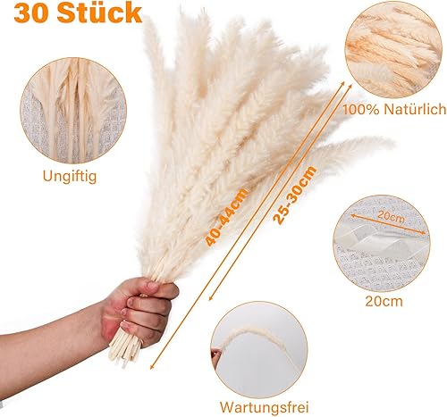 Herbe de la Pampa Naturelle 44cm, 30PCS Bouquet Fleurs Séchées, Pampa Séchées Blanc Naturelle Décoration pour Boho Arrangements, Mariage, Chambre, Anniversaire