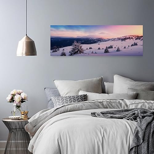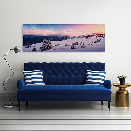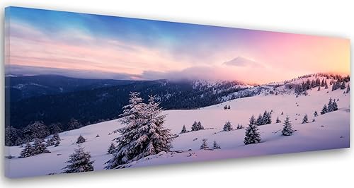 Feeby. Tableau Déco, Impression sur toile, Décoration murale, Image imprimée, 100x40 cm, MONTAGNES, NATURE, BLEU