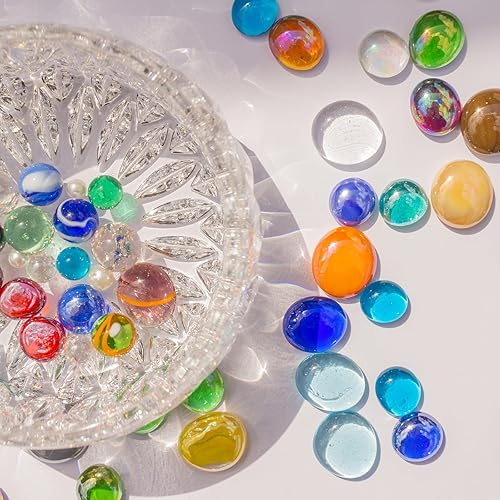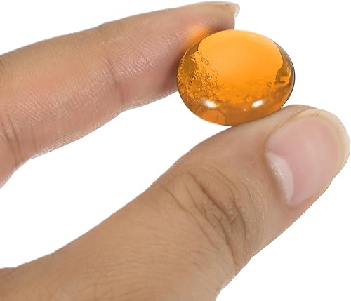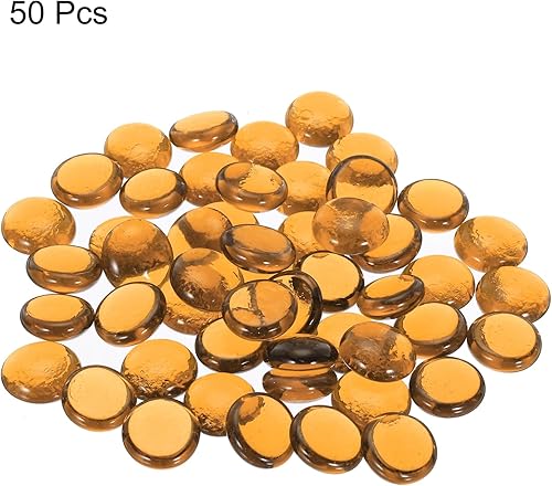 QUARKZMAN Billes de Verre Plates Décoratives 17-19mm Remplissage de Vase en Roche Perles Cailloux Ambre Clair pour Aquarium Décoration de distribution de Table, 50 Pièces
