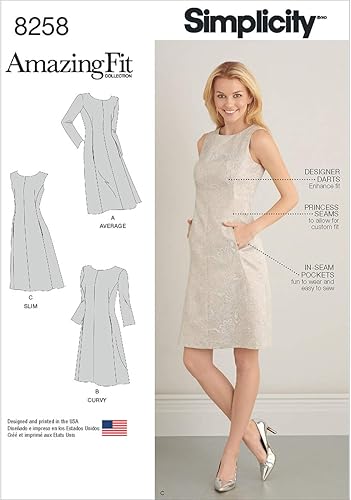 Simplicity 8258 AA pour Femme et Taille Plus Robe de Amazing Fit Patron de Couture, Blanc, Tailles 10–12–14–16–18