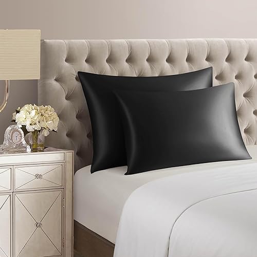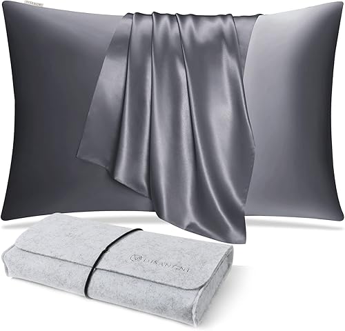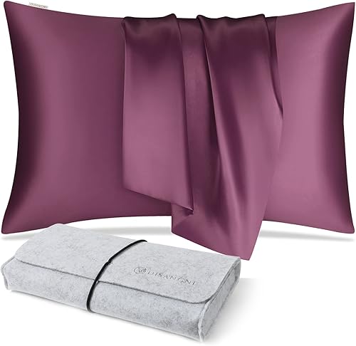 DISANGNI Taie d'oreiller 100 % soie de mûrier naturelle pour les cheveux et la peau avec fermeture éclair dissimulée, 22 mommes, taie d'oreiller en soie véritable des deux côtés Violet 60 x 60 cm