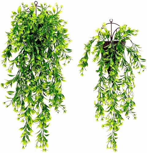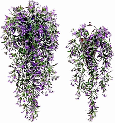 Kingrun 2 Pcs Plantes Suspendues Artificielles en Plastique Fausse Plante Exterieur DéCoration pour Home Mariage Garden Party Violet Rouge Blanc