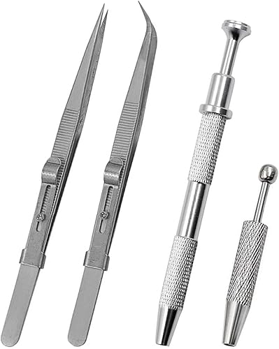 GIONAR Lot de 2 pinces à épiler en acier inoxydable avec pince à boule de piercing, pinces à épiler Prong et support diamant, outil de précision pour la fabrication de bijoux et la réparation