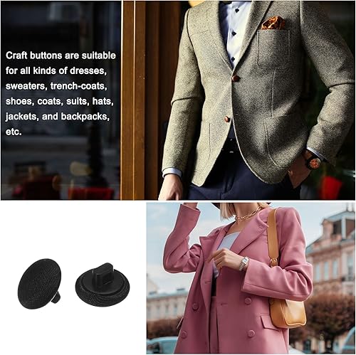 QUARKZMAN 10Pcs Boutons de Couture en Plastique Recouverts de Tissu en Coton de 10 mm de Diamètre pour Costumes, Robes, Blouses, Noir