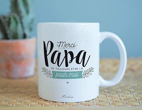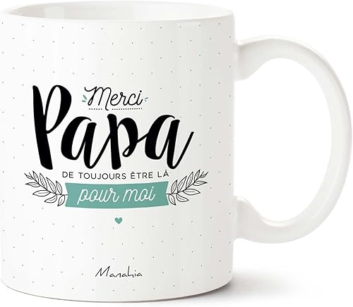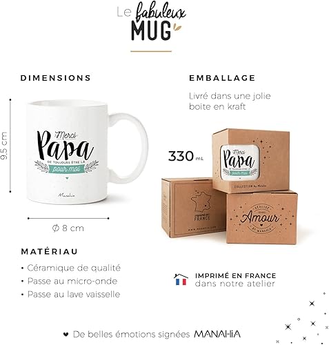Manahia Mug Cadeau Papa Tasse Personnalisée - Merci papa de toujours être là pour moi - Avec Boite Kraft - 330 mL, Céramique - Imprimé en France - Futur Papa - Noël, Anniversaire - Fête des Pères