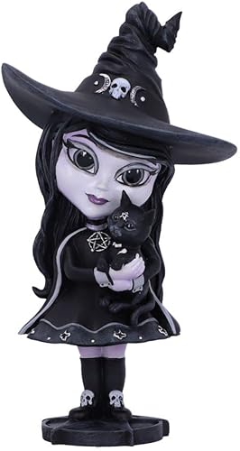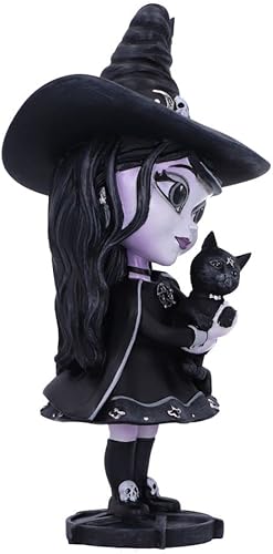 Nemesis Now Cult Cuties Figurine de sorcière Hexara 15 cm, en résine, Noire, Figurine Mignonne de sorcière et félin, complément Parfait à la Collection Gothique, coulée dans la Meilleure résine,