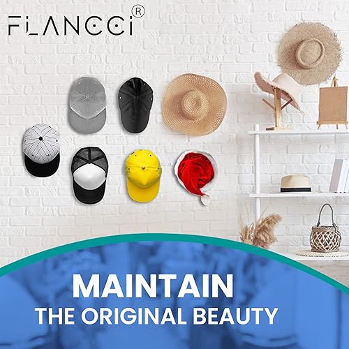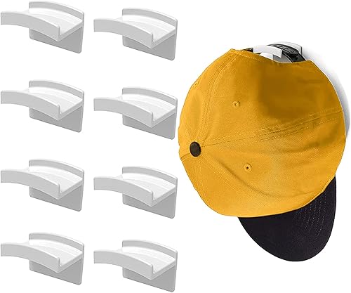 FLANCCI Crochets à Chapeau pour Mur, Design Minimaliste de Porte-Chapeaux, Porte-Chapeaux Auto-Adhésif, Cintre Solide pour Organisateur de Chapeaux, Rangement, Support, Crochet Blanc (Paquet de 8)