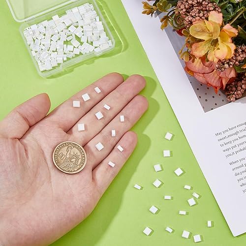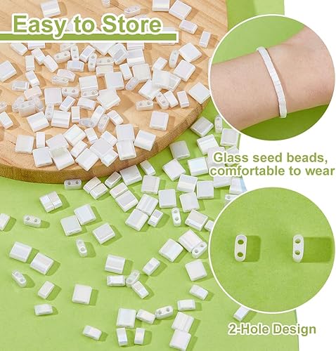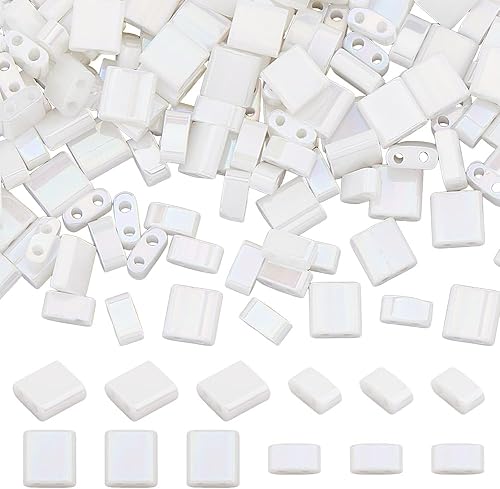Hobbspring Tila Lot de 200 perles de rocaille rectangulaires en verre 2 tailles 2 trous Blanc Plat Carré Mini perles d'espacement en vrac pour la fabrication de bracelets, colliers, boucles d'oreilles