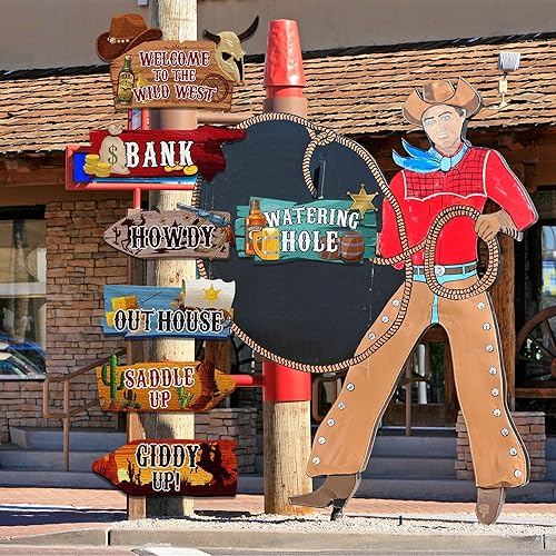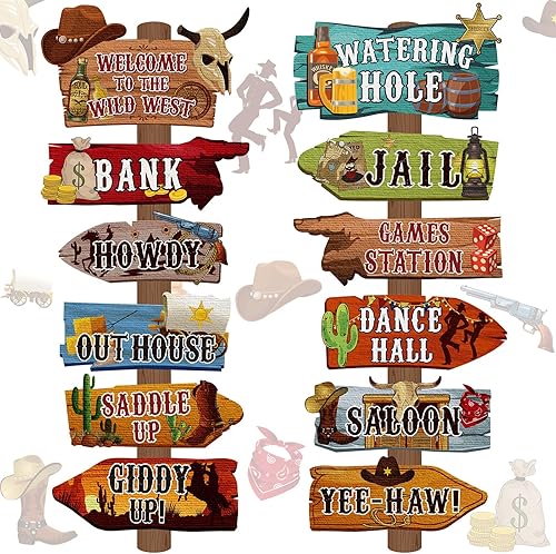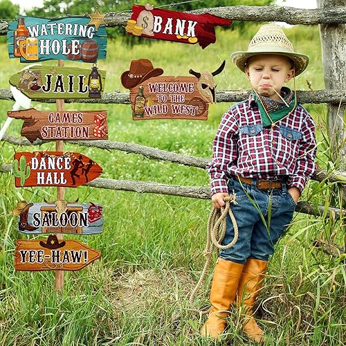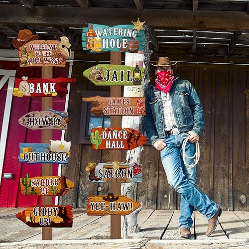 24 Pcs Panneaux Directionnels de Fête Occidentale Panneau de Jardin Occidentale Découpes à Thème de Rodéo Cow-Boy Panneau de Bienvenue Ouest Sauvage Fond de Décor pour Fête d'anniversaire