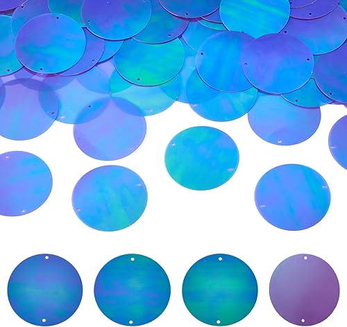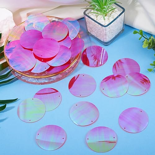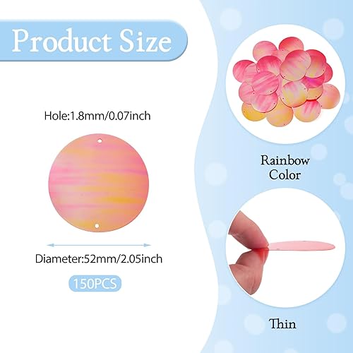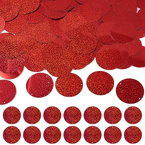 Pandahall Lot de 150 grandes paillettes rondes et plates en PVC avec double trou pour broderie, couture, travaux manuels, fabrication de bijoux Rouge 52 mm