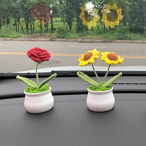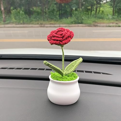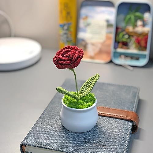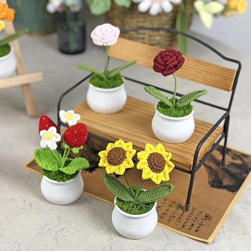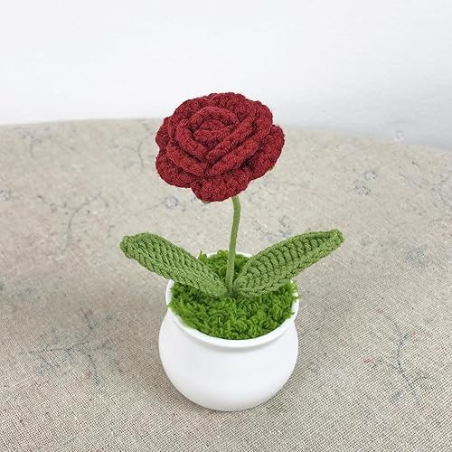 Fleur Crochet Fleurs Artificielles Deco Fleurs Tricotées Peluche, Petites Plantes Pot Faites à Main Tricotées Décorations Bureau de Chambre à Coucher Cadeau Jour Enseignant de Fin d'études (Tulipes)